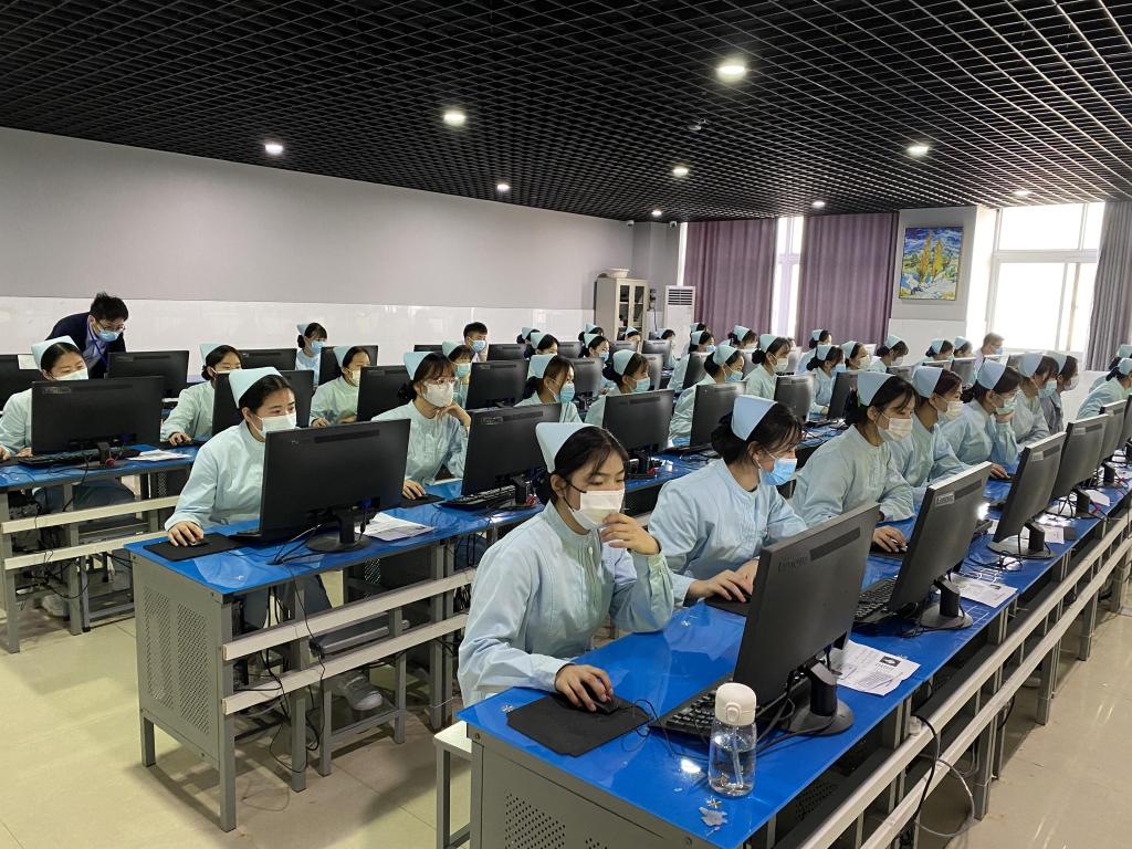上午8:30开始考试,同学们认真答题。教务处王勇处长、护理学院王风云院长、陈永惠副院长巡视各考场。
