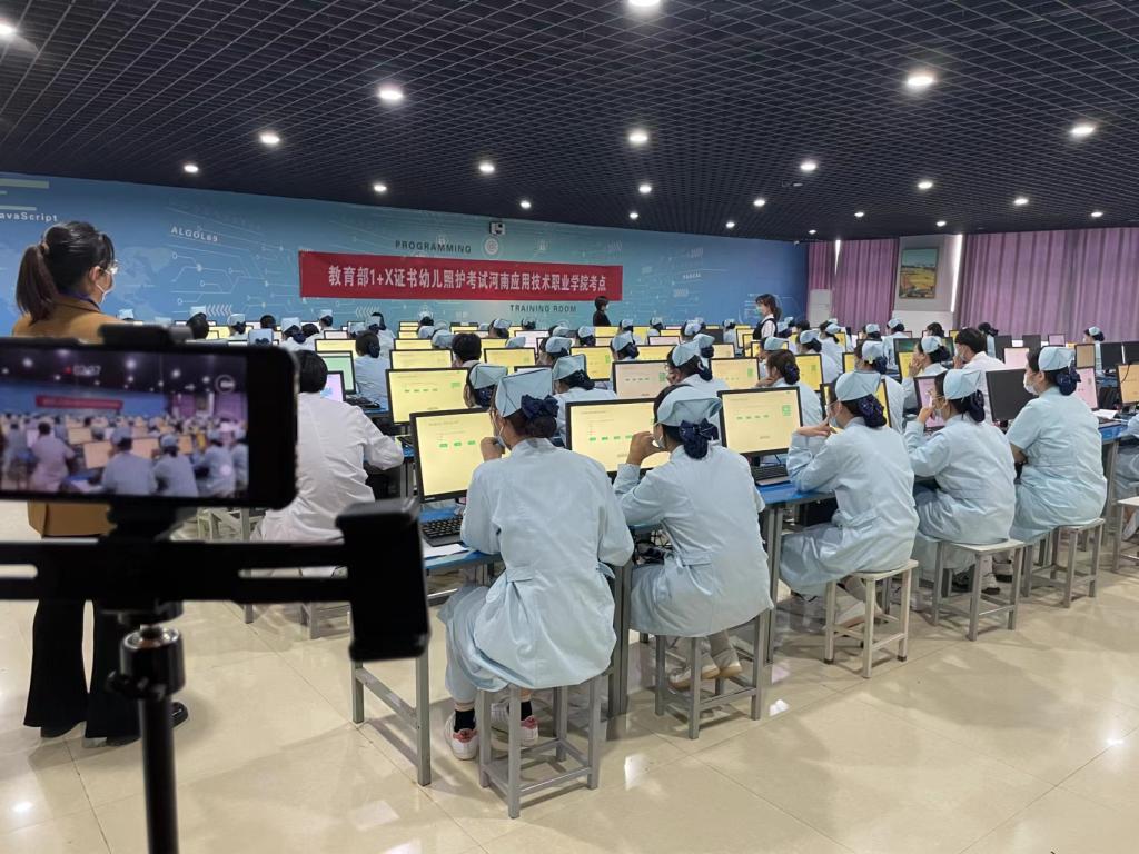 2022年5月15日,河南应用技术职业学院护理学院承接的教育部1+X证书幼儿照护考试包括机考理论和现场实操两部分,本次考试有70名护理及助产专业在校学生参加。在各部门领导高度的重视下,监考老师的严格考评中,督导员的全程监察下,圆满完成此次考试任务。