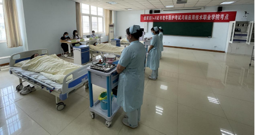 河南应用技术职业学院2022年上半年教育部“1+X”老年照护职业技能等级证书考试于2022年5月21日顺利完成。河南考评站试点院校河南应用技术职业学院经过认真选拔、精心组织培训、严格考核考评等工作,顺利组织70名学生参加老年照护职业技能等级证书(中级)考试。