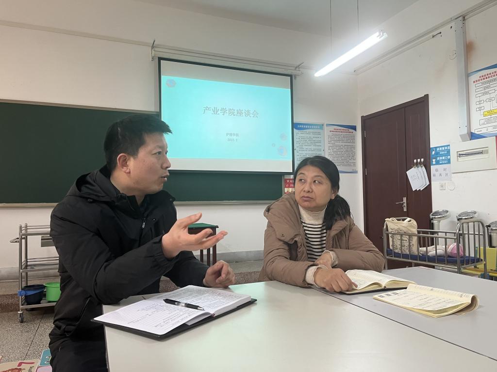 2月16日下午,护理学院在实训楼D305教室召开产业学院座谈会,邀请贝博校企合作与就业处处长李海富出席,会议由护理学院王风云院长主持,学院温晓丽副院长、教务办和教研室主任参会。