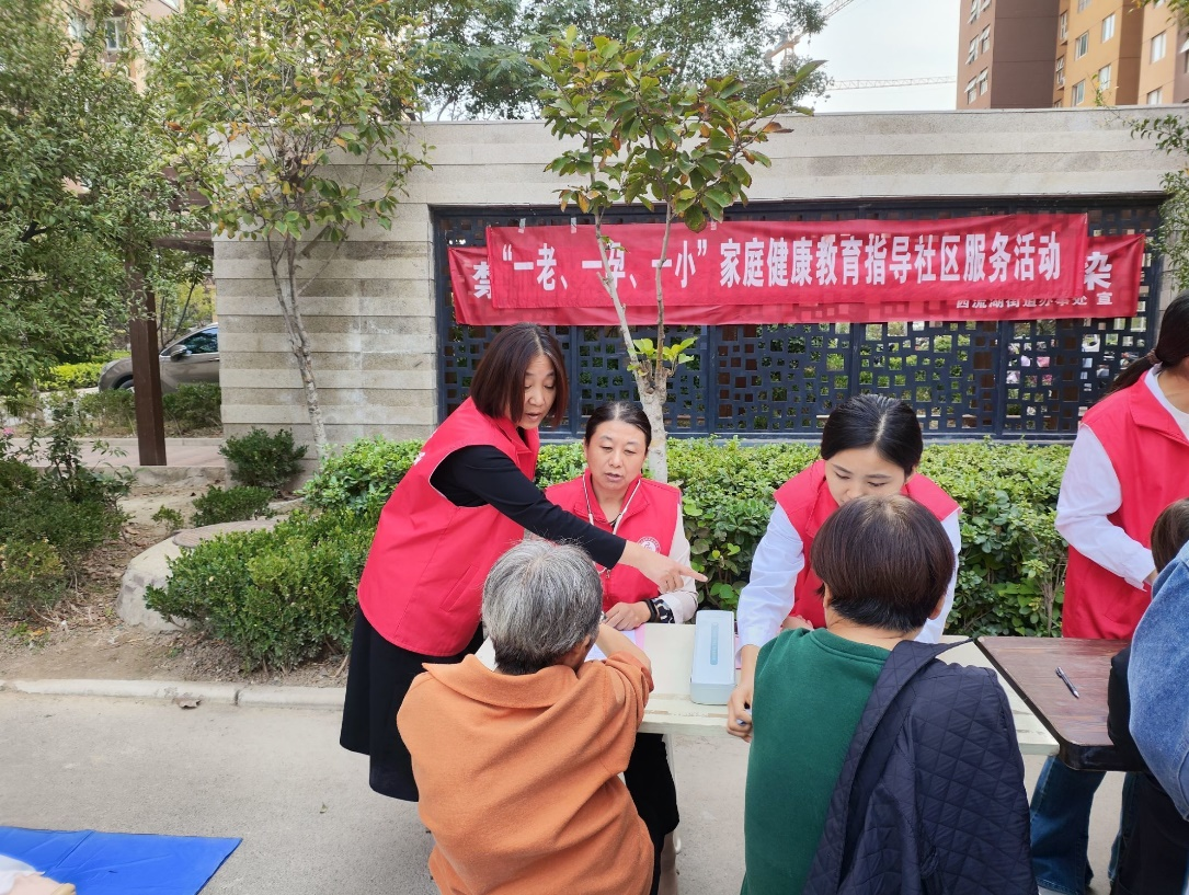 以 “一老一孕一小家庭健康教育指导”项目为依托,制订关爱老孕小社区服务方案,项目组成员组建的的教师志愿者团队为老年人提供健康指导、医疗诊断、用药咨询等服务,耐心细致地解答老人所提出的问题。现场亲切询问老年人的身体状况,还为老年人测血糖、量血压,进行秋冬季节老年人养生保健相关知识宣教。用一片爱心温暖老人,增强了老年人对团队的认同感,老人的获得感、幸福感、安全感得到提升。