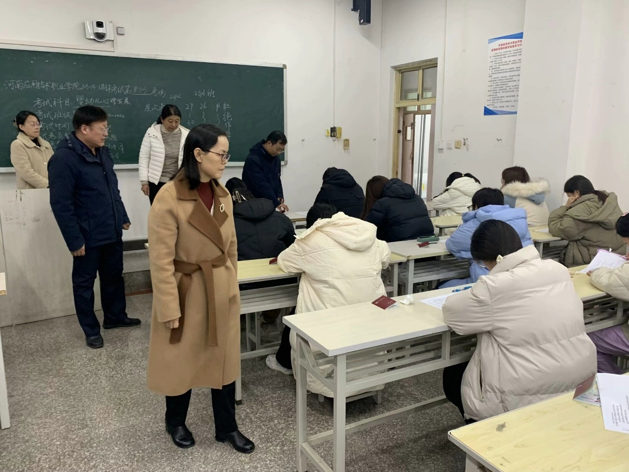 为加强考试组织管理与考风建设,1月9日下午,校党委书记闫俊山、副校长陈君丽、纪委书记陈雅莉,教务处处长赵扬、教务处副处长付永、护理学院院长王风云、护理学院党总支副书记景淼等相关负责人对贝博10个考场,27个班级800余人的考试进行巡视。