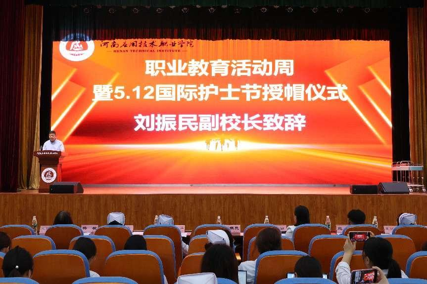 在第113个国际护士节来临之际,河南应用技术职业学院护理学院职业活动周暨5·12国际护士节授帽仪式于2024年5月13日下午在郑州校区活动中心举办。河南应用技术职业学院副校长陈君丽、副校长刘振民、教务处处长赵扬、教务处副处长杨敏、护理学院党总支书记杨明杰、护理学院院长王风云、护理学院党总支副书记景淼、护理学院全体教职工、护理学院学生代表参加本次庆祝活动。特邀郑州大学护理学院教授刘桂萍、郑州大学第三附属医院护理部主任白桦、河南省胸科医院护理部主任王江东等护理前辈参与授帽仪式。