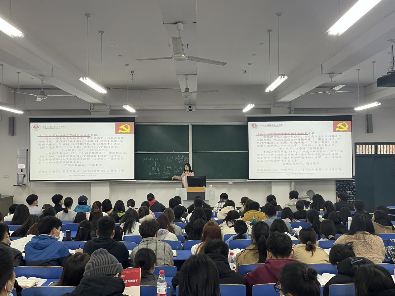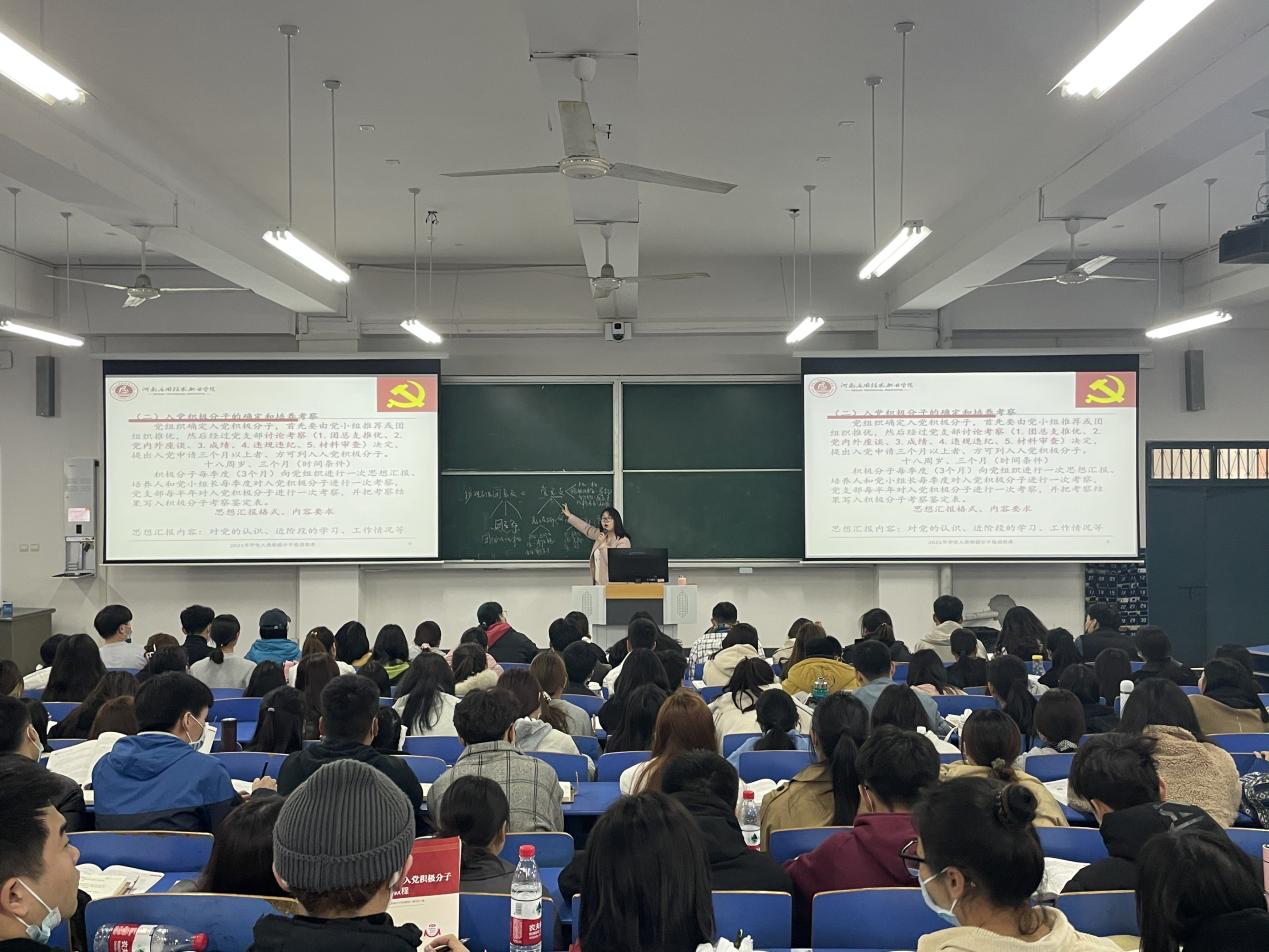 2021年3月13日上午,护理学院党总支组织委员景淼同志结合大学生实际情况,以《坚持自我完善 争做合格党员》为主题,在B楼201教室为108名积极分子讲授专题党课。