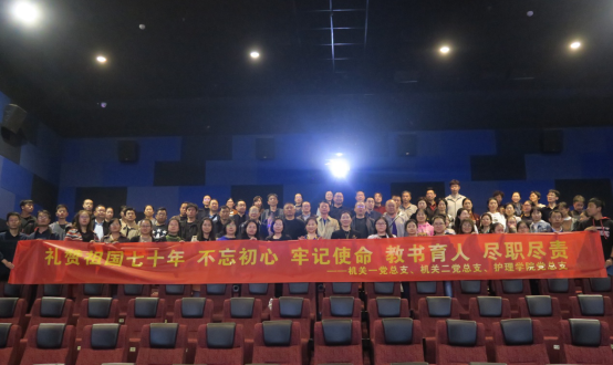 为庆祝中华人民共和国成立70周年华诞,深入贯彻落实党的十九大精神和习近平总书记在“不忘初心、牢记使命”主题教育工作会议上的重要讲话精神。10月10日晚,贝博机关一党总支、机关二党总支和护理学院党总支结合“不忘初心、牢记使命”主题教育,组织全体党员100余人参加“我和我的祖国”集体观影活动。