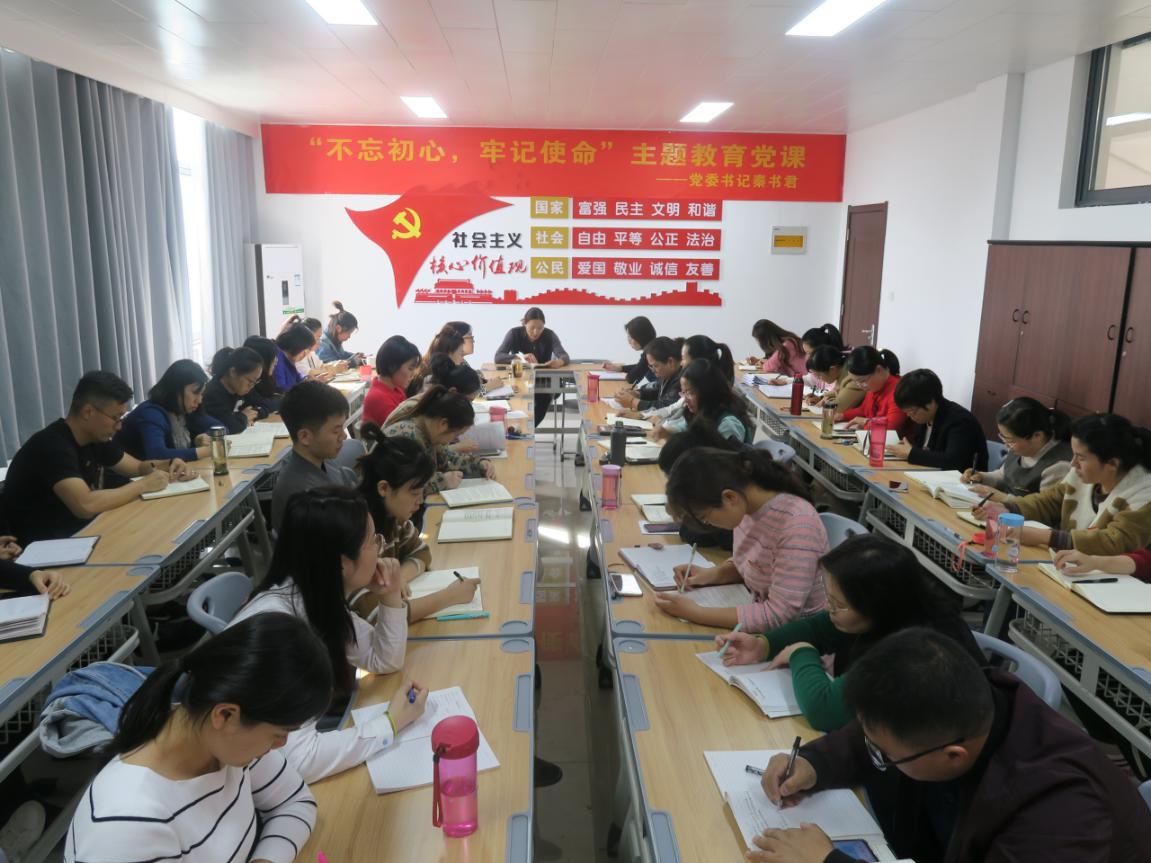 2019年10月29日下午,护理学院党总支组织全体教职工在A515集体学习“不忘初心、牢记使命”主题教育专题六《强化党的政治纪律和政治规矩》和专题七《加强党性修养》。