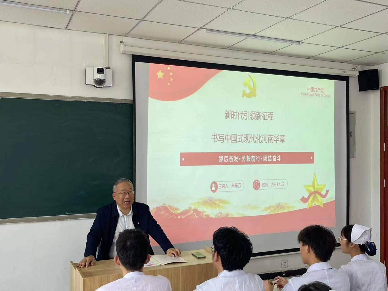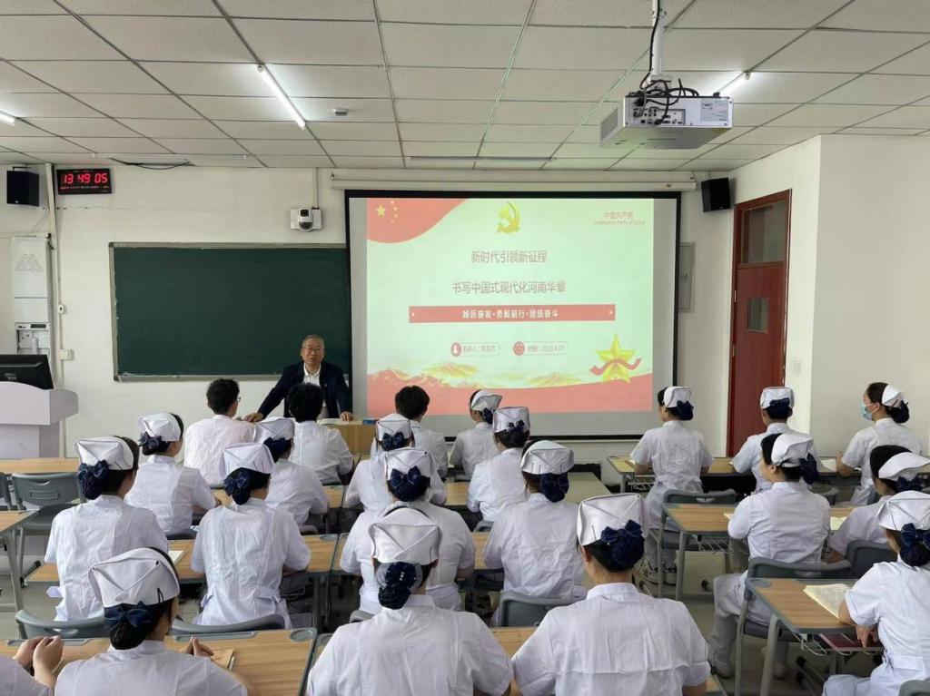 为深入学习贯彻党的二十大精神,坚持学思用贯通、知信行统一,引导并鼓励广大师生坚定文化自信,为建设社会主义文化强国作出更大贡献,4月17日,贝博党委副书记朱东方以“新思想引领新征程 书写中国式现代化河南华章”为主题,为护理学院学生上了一堂精彩生动的思政课。