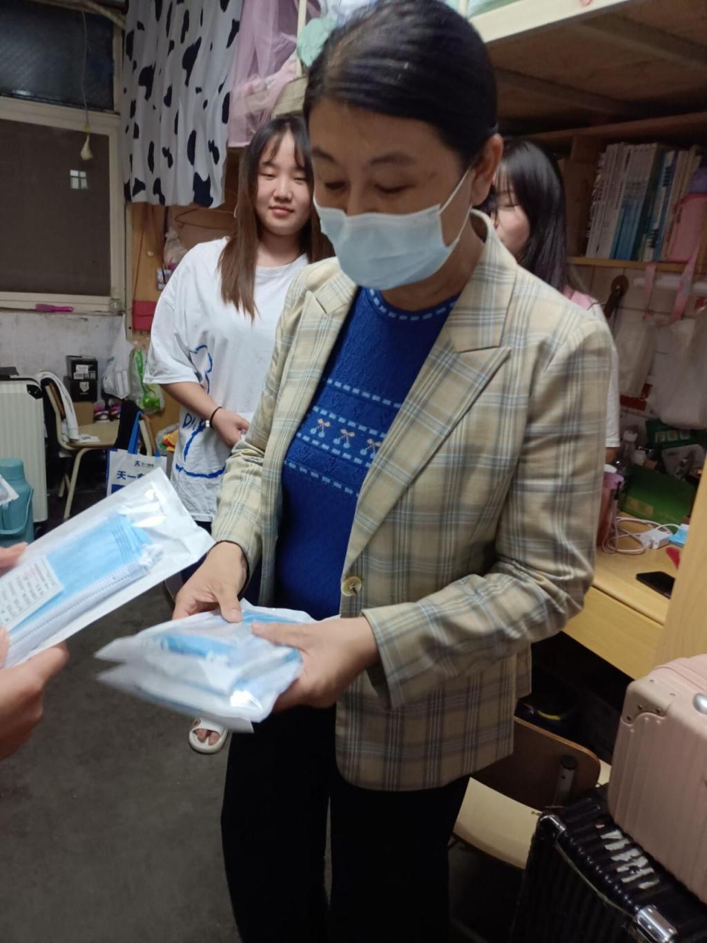 在口罩发放过程中,杨明杰书记把学校疫情防控要求和学校对学生的关心关怀传达给同学们。学生们收到暖心口罩,感受到了学校的温暖。同时,强调在疫情防控形势严峻的背景下,要严格遵守疫情期间校园管理要求,叮嘱学生做好自我防护,勤通风,注意保持个人卫生并及时消除宿舍安全隐患。