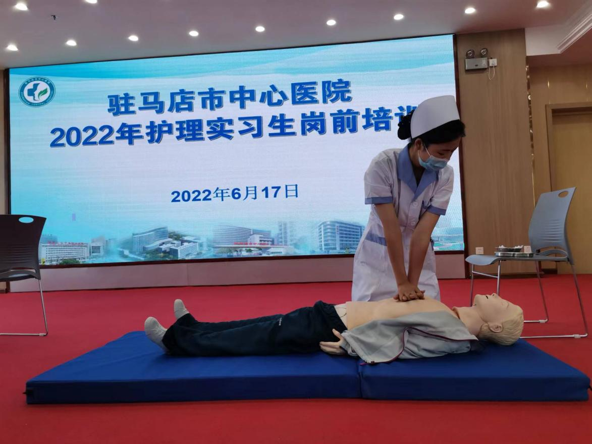 贝博护理学院护理2016班冯新茹同学实习期间表现优异,在驻马店市中心医院2022年护理实习生岗前培训中,在教师示范操作心肺复苏术后,冯新茹同学积极举手参与现场演示,沉着冷静、娴熟干练的操作技术受到医院护理部主任及其他在场护士们的一致好评。在演示结束后,冯新茹同学与其他两名医院在职护士作为代表,参与当地电视台关于医院宣传视频的拍摄,演示心肺复苏急救技术。