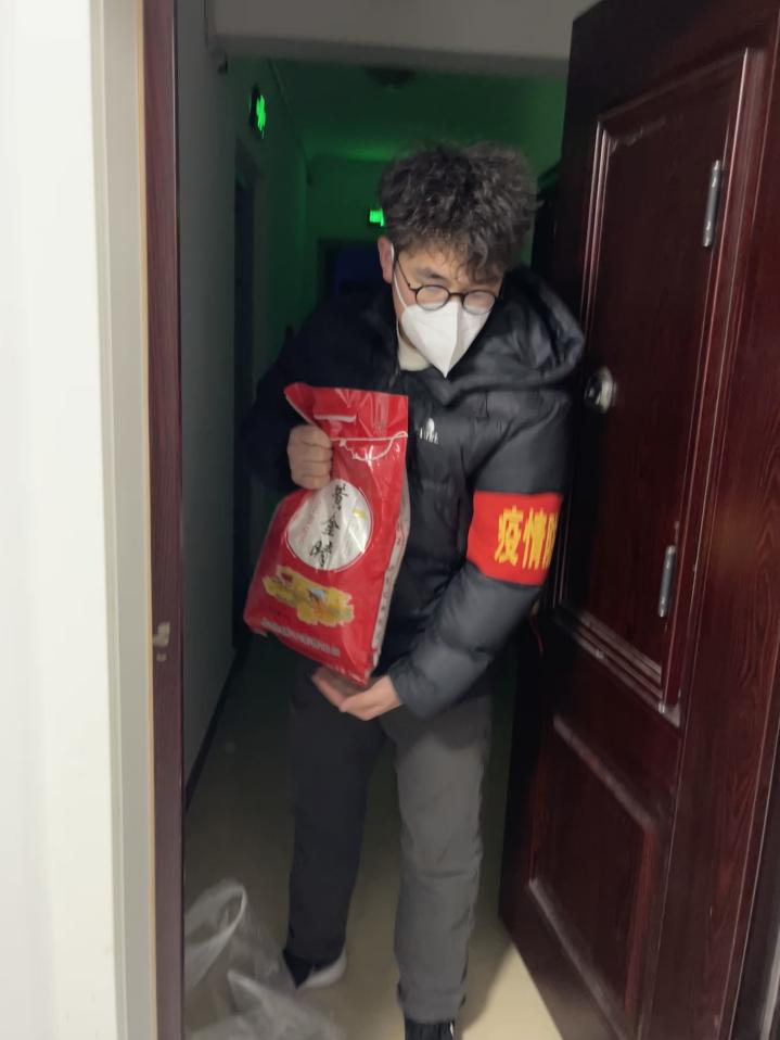 护理2219班庞时空同学,在兰考县东坝头村开展疫情防控志愿活动服务,为社区居民运送物资
