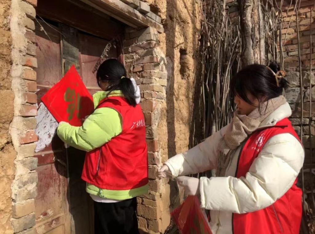 老护2202班陈薇同学,在信阳蔡桥乡参与文明过节志愿活动,帮助老人迎新年贴对联