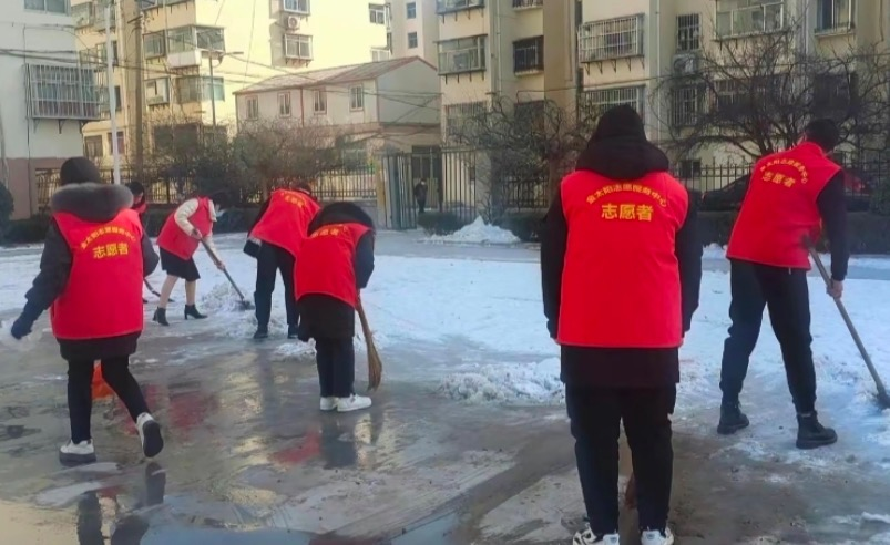 护理2109陈愉今同学,在周口市商水县开展社区服务活动,为居民打扫积雪,扫除出行障碍
