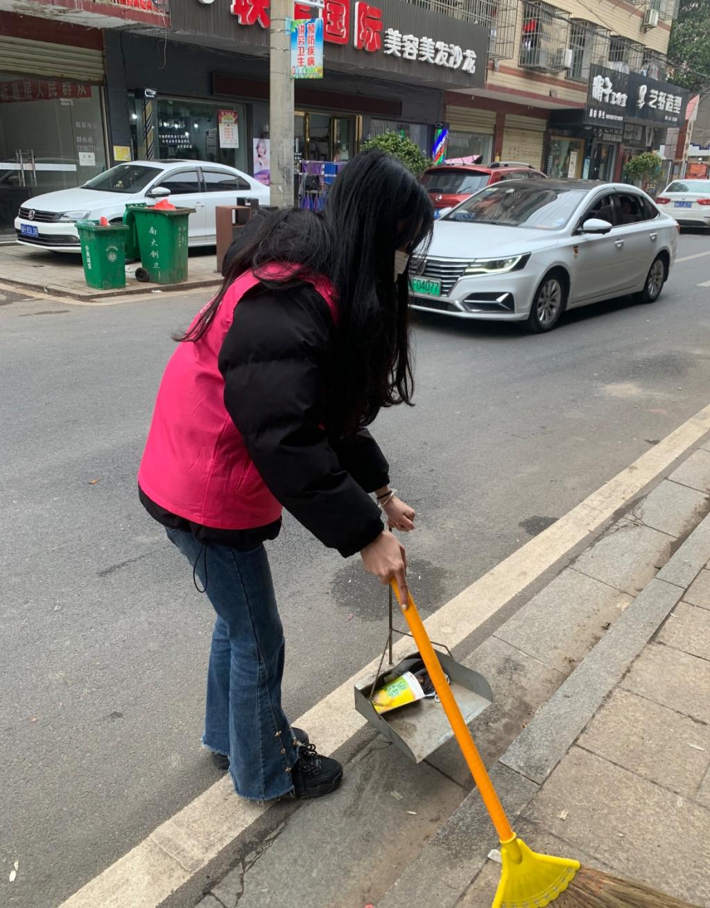 护理2217班刘永月同学,寒假期间在南阳市参与开展美好生活志愿服务活动,帮助环卫工人打扫街道卫生,共创美好环境