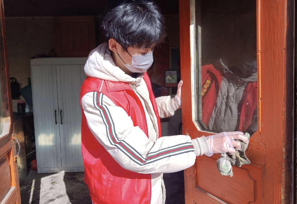 护理2107马名扬同学,在周口市太康县开展文明过节活动,帮助行动不便的老人打扫卫生,为迎春节做准备
