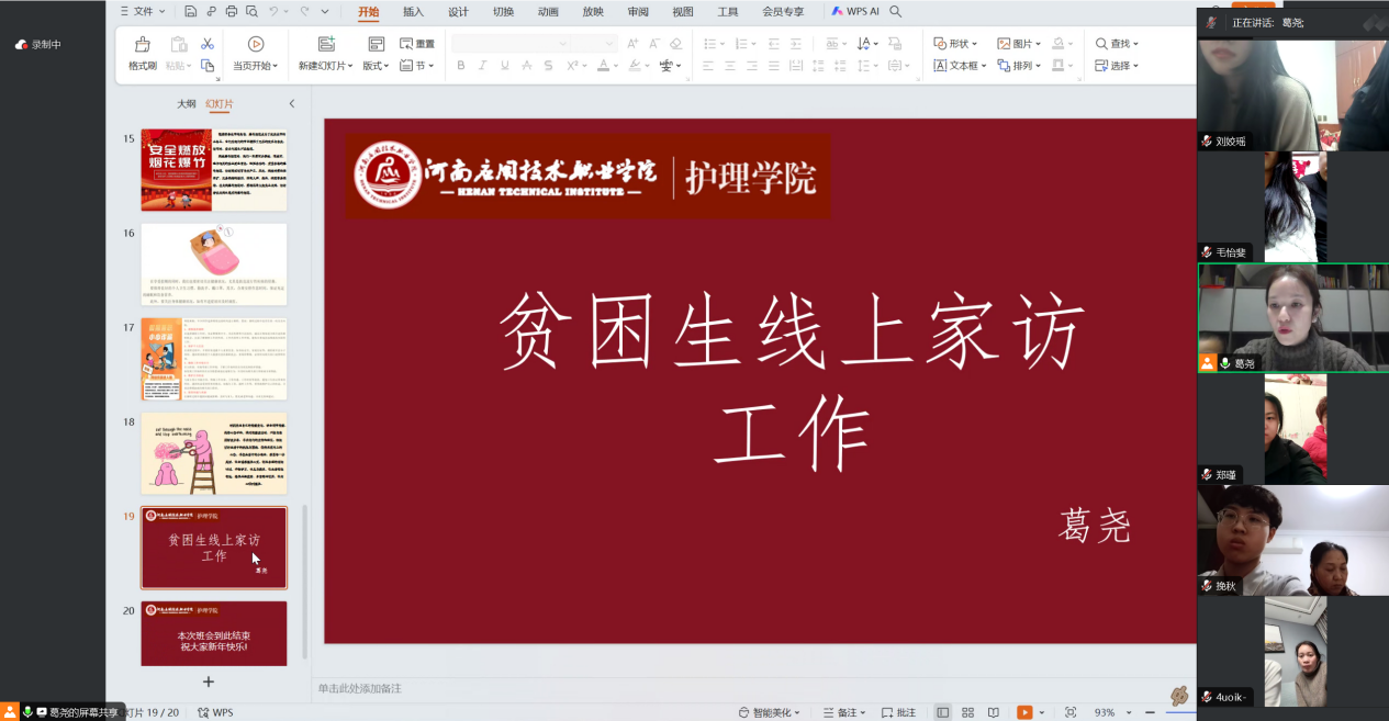 学生资助是重要的保民生、暖民心工程,事关教育公平和民生福祉。为了贯彻落实学校关于学生资助工作的要求,帮助经济贫困家庭,助力贫困学生度过一个有温情的寒假。护理学院开展了“温情暖寒假”学生资助宣传及线上家访工作。