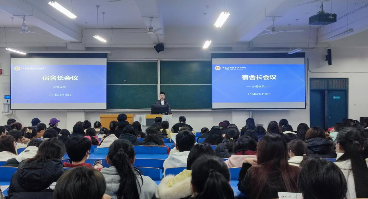 为了让同学们更深入的学习了解宿舍消防安全措施、紧急逃生方法和安全用电,护理学院于2024年3月10日在B101召开宿舍长工作会议。会议由辅导员梁海洋主持,学院全体宿舍长参与。