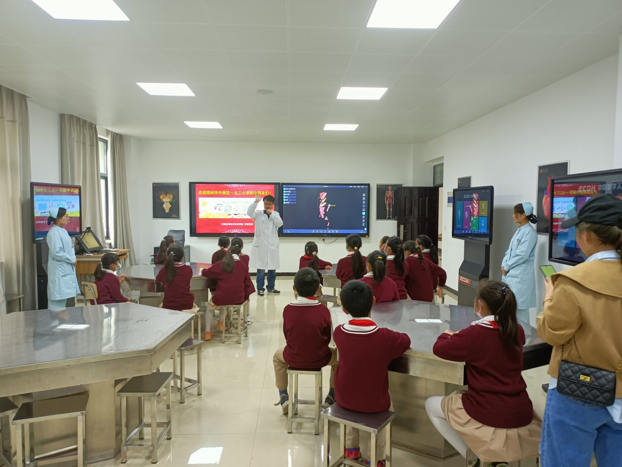 5月27日,护理学院组织中原区一五三小学百余名师生到贝博科普教育基地——人体解剖虚拟仿真实训中心参观学习。护理学院老师和学生志愿者参加了此次科普教育活动的讲解和接待工作。