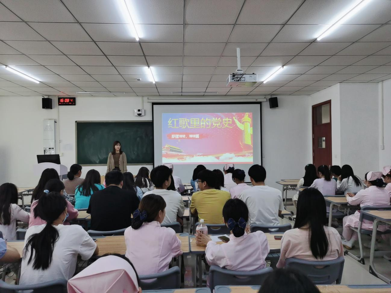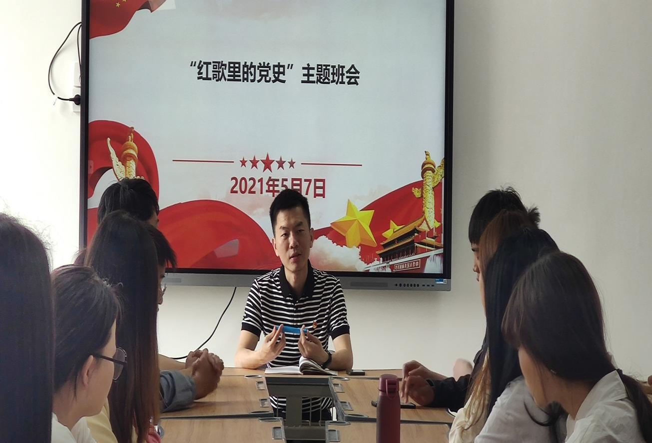 为庆祝中国共产党成立100周年,在青年同学中广泛开展爱国主义教育、社会主义核心价值观教育,激发爱党爱国情怀,鼓励青年学生坚定理想信念,担当时代责任,护理学院团总支积极响应学校号召,开展“讲红歌里的党史”主题班会。