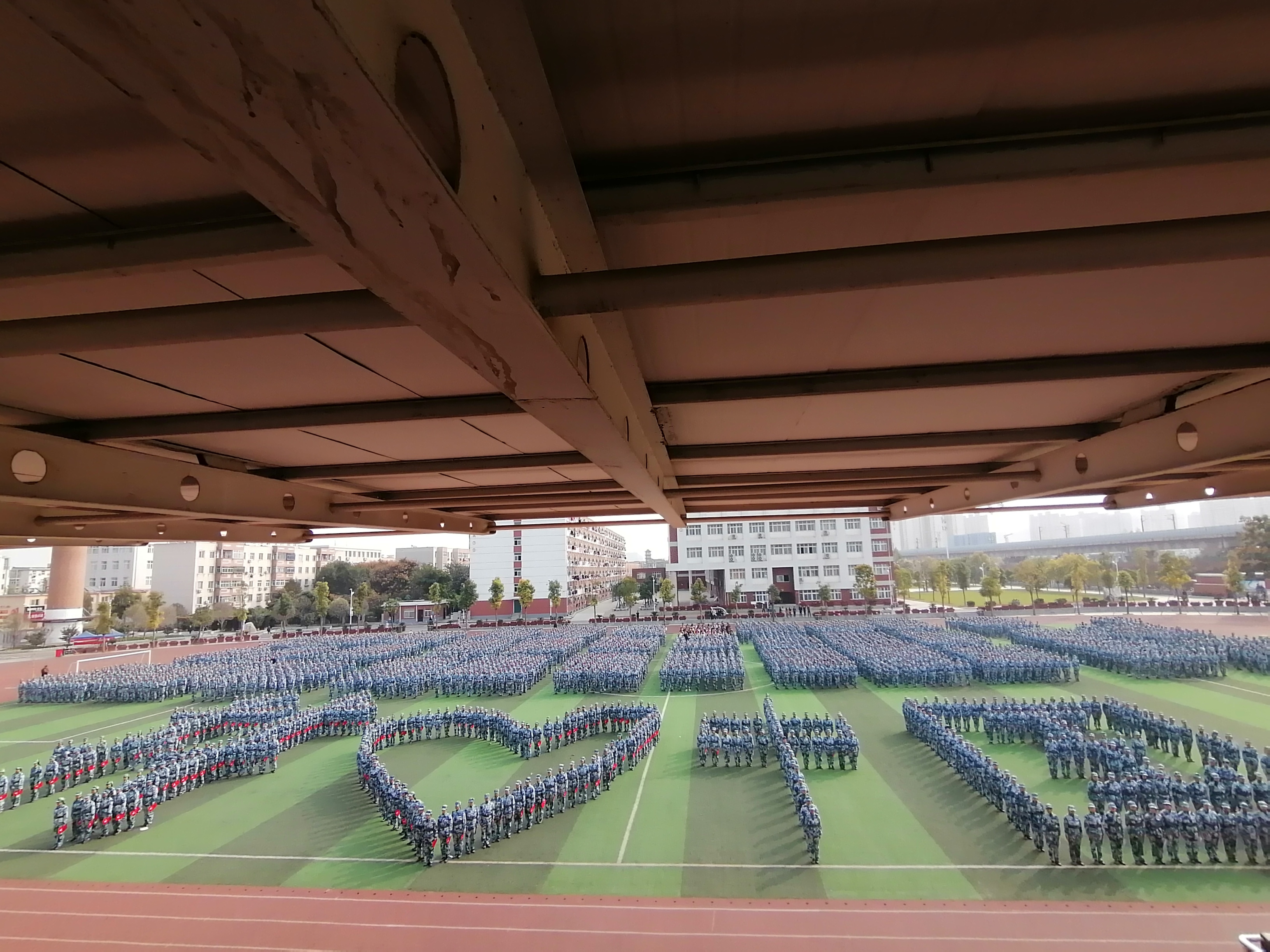 新生军训成果汇报暨总结表彰大会于10月29日在操场举行。护理二连、七连作为优秀连队开展分列式表演,步履铿锵,目光坚定,身姿挺拔,充满了青春向上的活力。走齐步,他们整齐划一;走正步,他们步履矫健;敬军礼,他们动作标准;喊口号,他们声音嘹亮。十天的汗水,换来了今天的成绩。之后,女子连队表演了手语操《感恩的心》,并摆出了我爱中国的文字。整场动作整齐优美,歌声激荡人心。