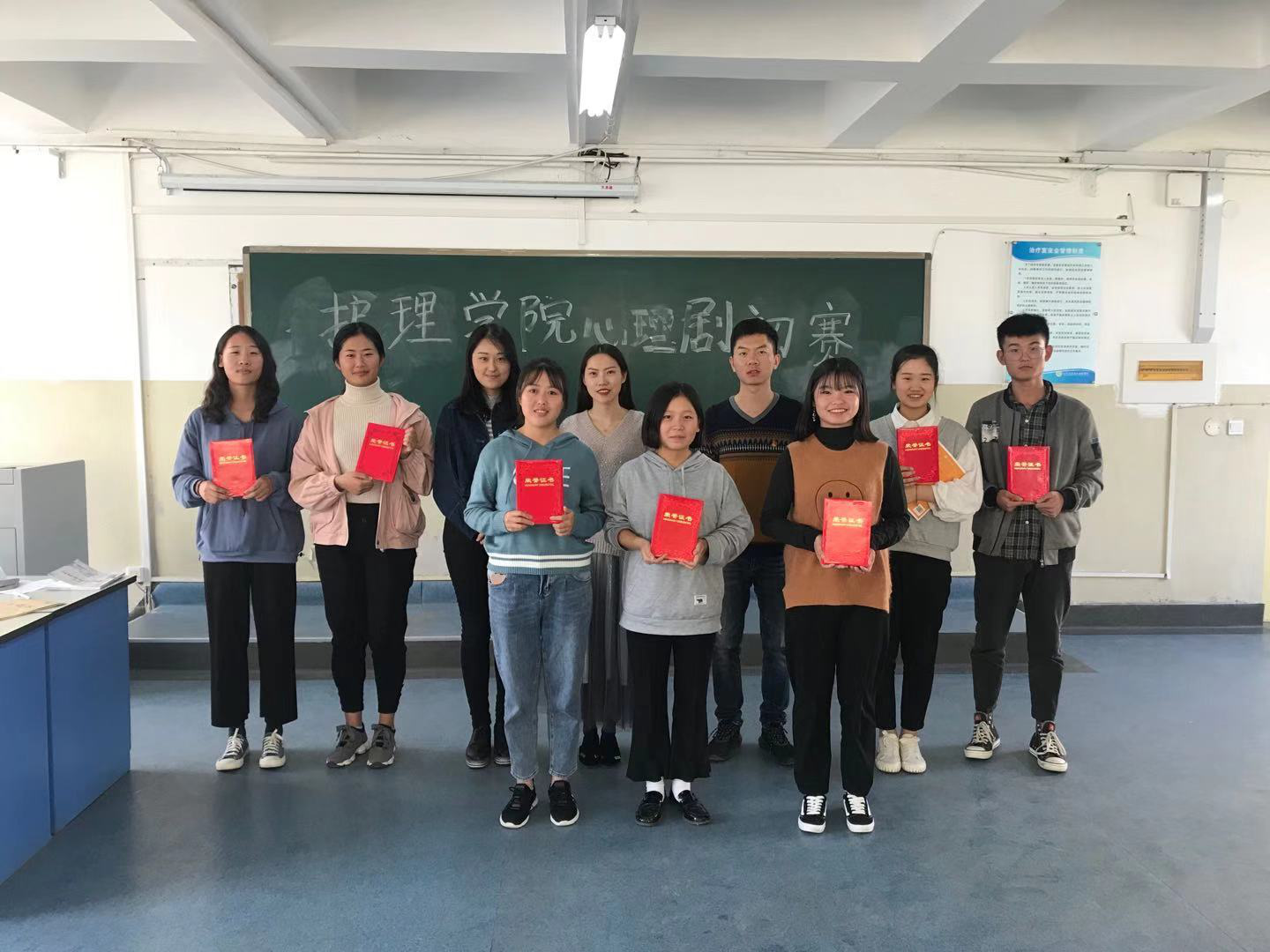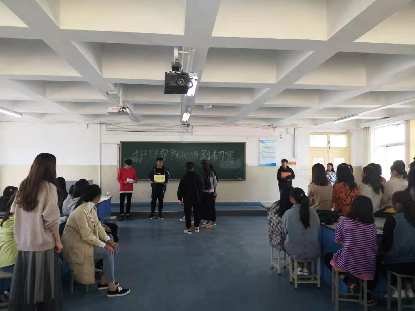 为积极响应学校“心理文化”月的号召,良好的传播积极向上的生活及学习理念,激发学生热情,活跃学院气氛,护理学院心理辅导站于2019年10月30日下午在D207教室举办了心理剧展演暨“心理文化月”心理情景剧活动,护理学院90名同学参加了演出。这次情景剧的主题是“健康青春你我,奉献伟大祖国”。护理学院徐娟书记高度重视,亲自指导并参与了情景剧筛选工作。