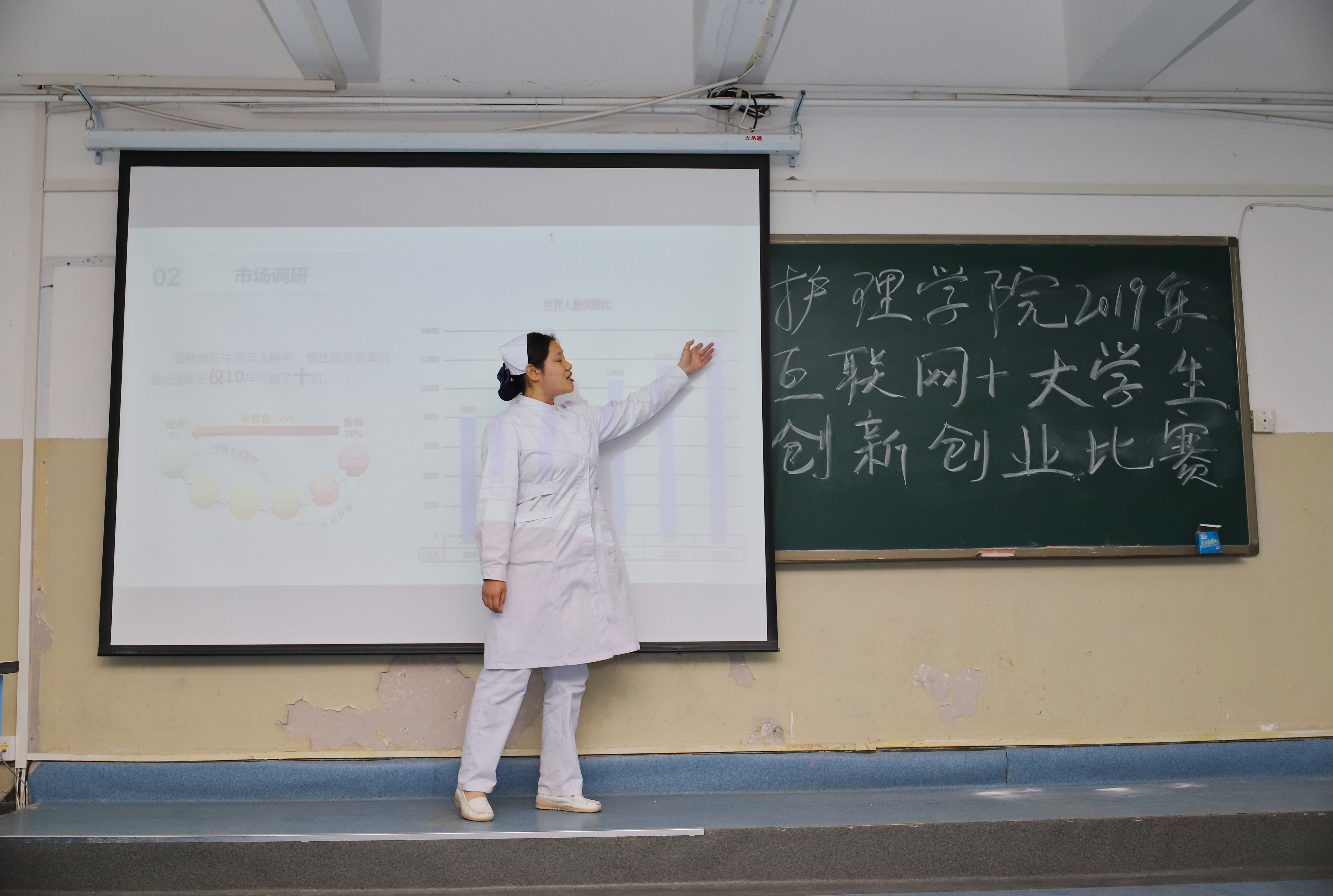 护理学院高度重视“互联网+”大学生创新创业大赛。自备赛启动以来,在学院领导的关心指导下,各班级广泛动员、精心组织,为竞赛取得优异成绩做足了铺垫。各班级递交班级策划书,评委老师层层选拔出八支队伍进入决赛。这次大赛是每支队伍由演讲的形式进行的比赛,比赛场面异常激烈,参赛队伍的创业主题都是以人的身体健康和医疗专业为主,通过PPT展示讲解和现场问答的形式为评委老师全方面的阐释了各项目的功能特点和发展前途,巧妙的构思、完整的方案、光明的前途以及选手们的自信和实力都给评委留下了深刻的印象。在此次比赛中,以“双向拉链医用裤”和“共享厨房”荣获一等奖,“芮曼按摩椅”、“全自动心肺复苏仪”、“艺生”荣获二等奖,“老来乐养老院”、“长城综合疗养院”、“恒越设计”荣获三等奖。