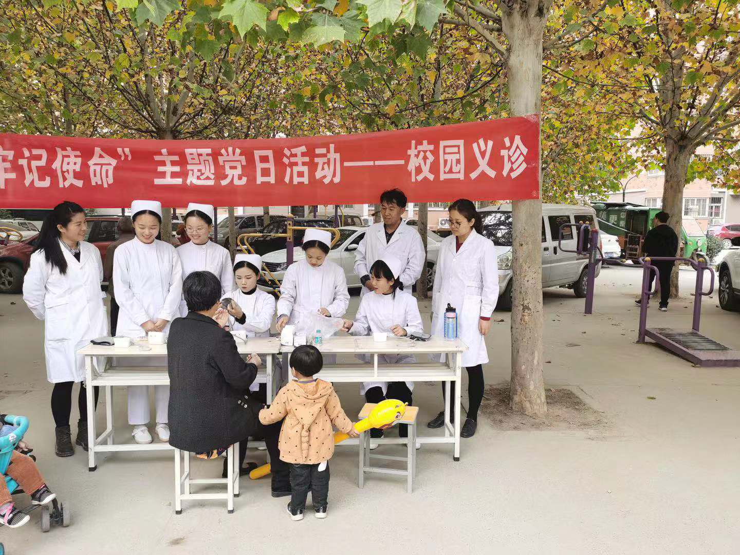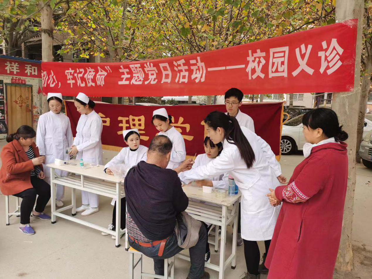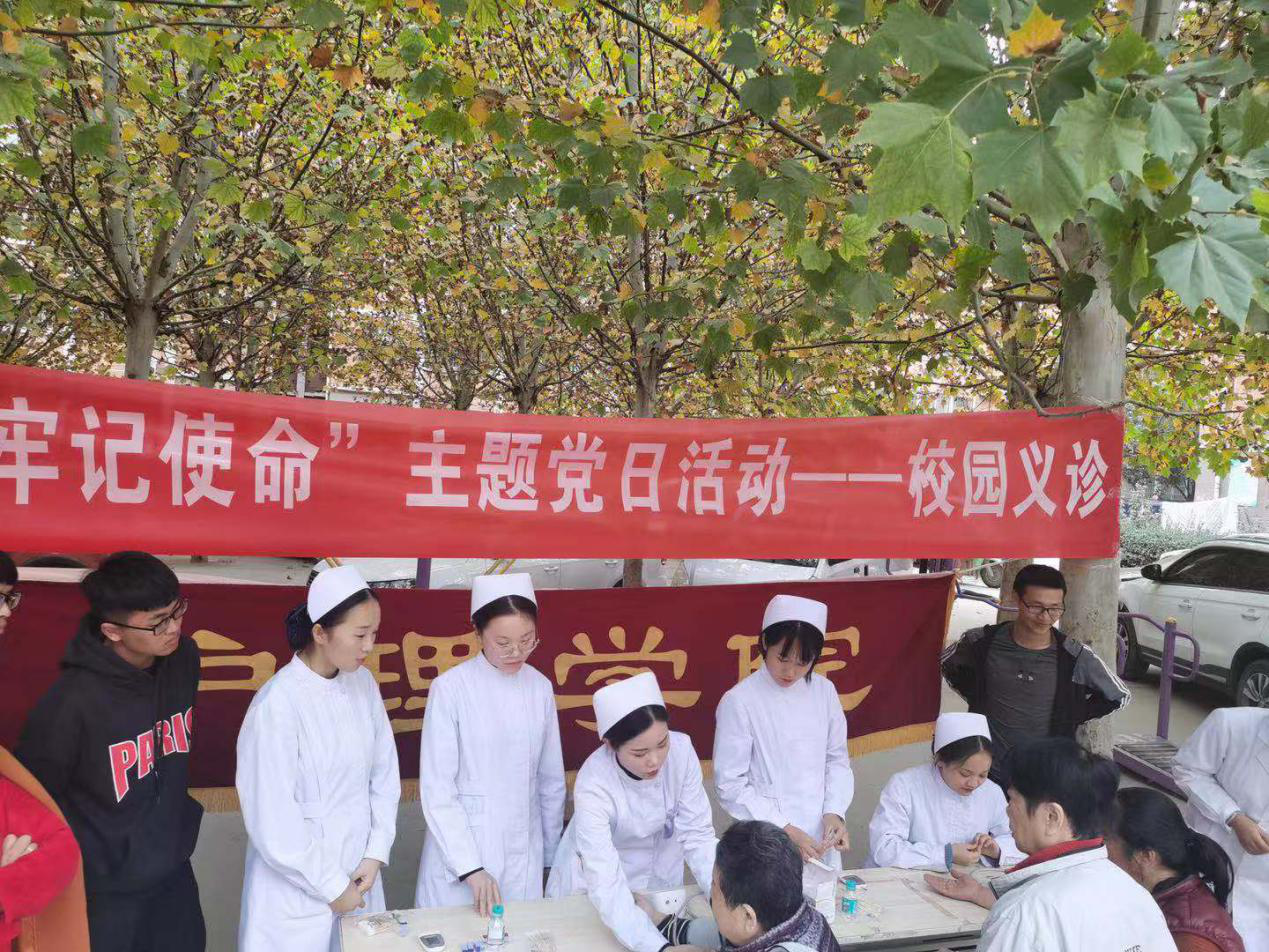 根据贝博“不忘初心,牢记使命”主题教育工作部署,2019年11月12日下午,护理学院走出校门,在校园附近的二化小区开展了“不忘初心、牢记使命”主题党日校园义诊活动。参加活动的有李悦临老师、董莹莹老师、郑伟老师、王金库老师以及护理学院的学生。