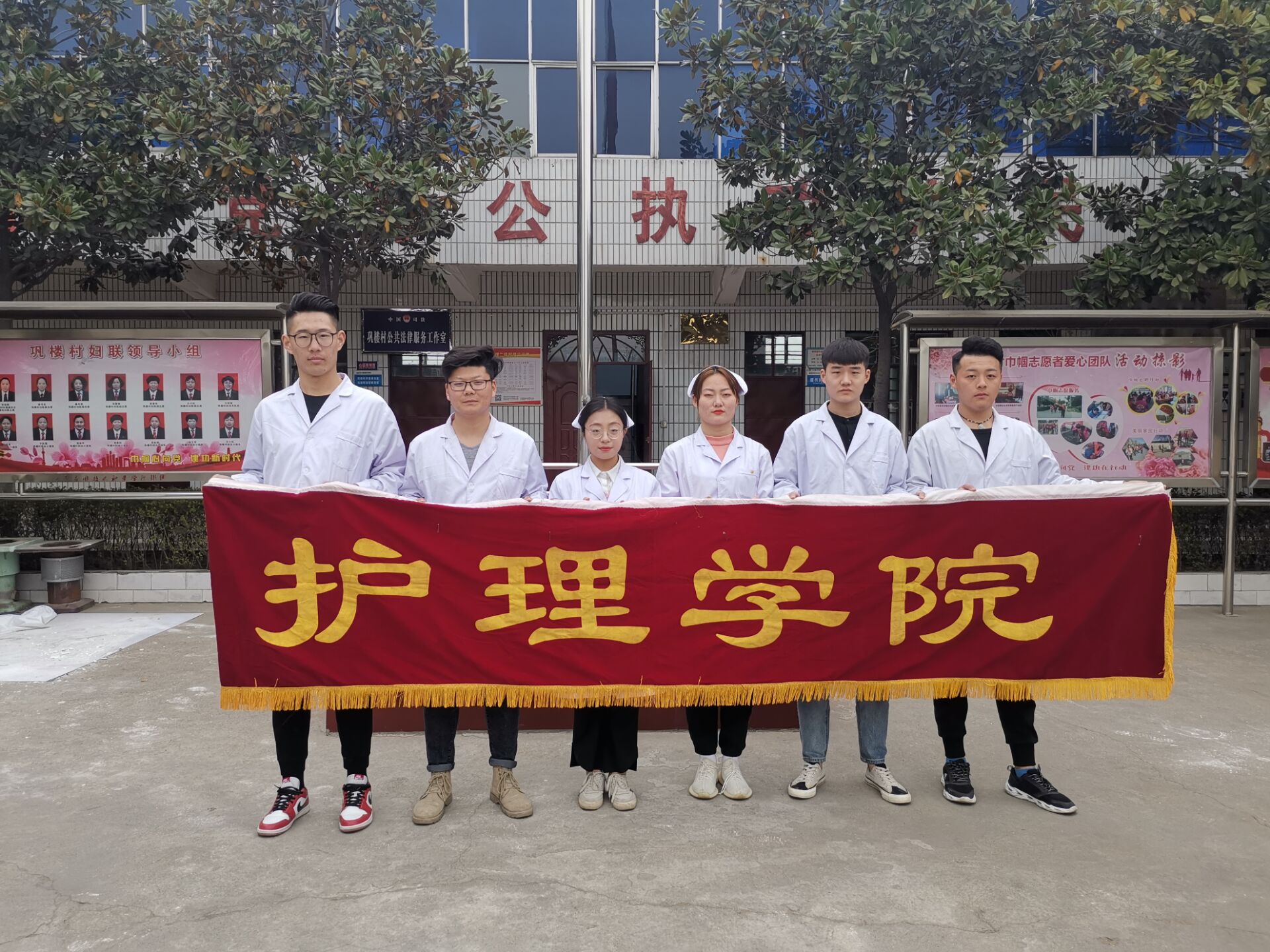 三月,是文明礼貌月,是学习雷锋精神月。为纪念雷锋同志,传承雷锋精神,发挥高校师生的专业优势,推动志愿服务事业实现新发展,向社会普及医疗健康知识,提高居民防病治病常识,在2019年3月22日中午,护理学院志愿者随学校宣传部来到了新密市来集镇巩楼村进行“义诊活动暖人心”义诊活动。