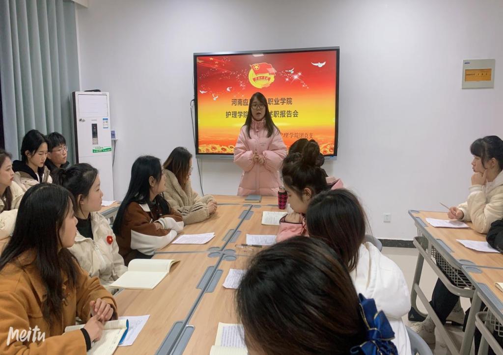 2021年12月17日,护理学院团支书年度述职报告会在A515教室举行。护理学院团总支书记景淼老师及各班级团支书参加了本次报告会。