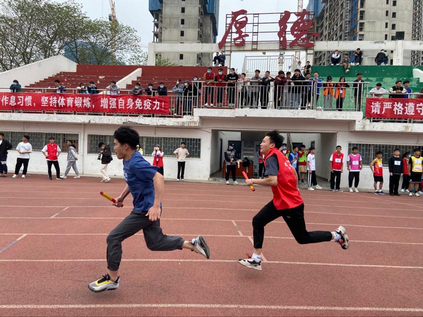 这是速度与毅力的接力,这是期望与祈盼的接力,伴随着枪声响起,四个完美的弧线被一个接力棒连接。护理学院的健儿们甩开鹰似的双臂,迈开闪电般的双腿,演绎着奋斗与拼搏。矫健的身影闪过,