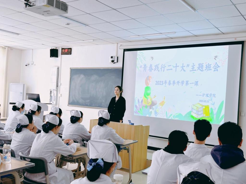 为深入贯彻习近平新时代中国特色社会主义思想和党的二十大精神,进一步加强大学生思想政治教育,引导大学生启航新学期,奋进新征程。根据学校宣传部、学生工作部等相关部门通知要求,切实做好贝博春季开学工作,护理学院以“青春践行二十大”为主题开展“2023年春季开学第一课”主题班会,不断推动党的二十大精神进课堂、进头脑。