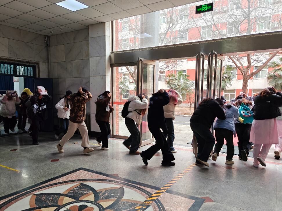 通过班会宣讲,引用国内外发生的地震实例,观看地震视频,使学生能够切身体会地震带来的伤害。同时通过理论的普及,让学生了解到震源、地震带、地震波、震级、烈度等基本知识,教育学生发生地震时不慌张,把握黄金时间,尽快到安全的地方躲避。随后组织学生开展应急疏散演练,在室内紧急避险,按照预定的疏散路线,迅速、有序撤离教室,跑向学校指定的安全集合点。过程紧张、快速、有序,达到了演练的预期效果。