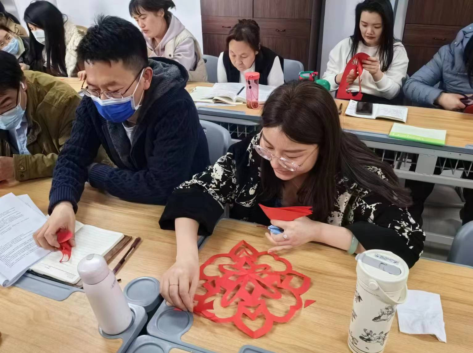 “剪采赠相亲,银钗缀凤真。叶逐金刀出,花随玉指新。”剪纸作为一种历史悠久的民间艺术,至今已经有一千多年的历史。因其独特的表现形式和丰富的文化内涵,被列为世界文化遗产。活动中,全体教职工积极参与,纷纷拿起剪刀,细心地剪裁着纸张,一幅幅精美的剪纸作品逐渐展现在大家面前,洋溢的笑容与精美的作品展现出她们对生活的热爱和对美的向往,同时在制作的过程中感受着中国传统文化的魅力。