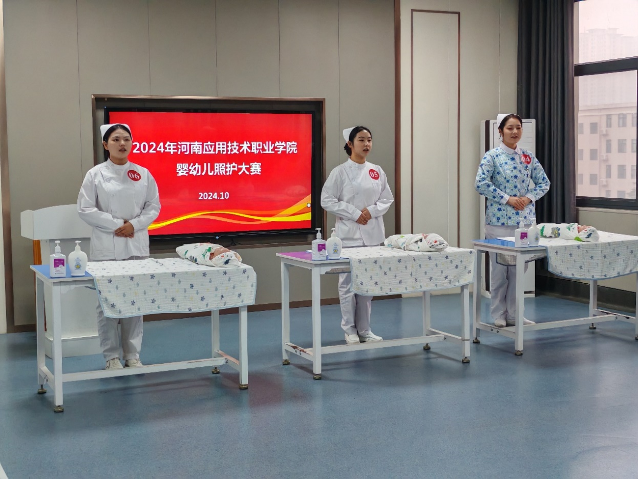 本次大赛由河南应用技术职业学院护理学院承办,得到了学院党委和各级领导的高度重视与支持。大赛前,学院进行了充分的准备工作,包括学生动员、技能培训、赛场布置以及比赛材料准备等,确保了大赛的顺利进行。