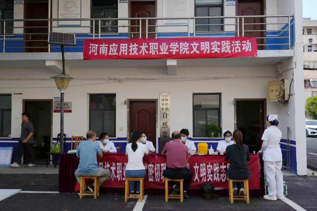 为持续深化学习贯彻党的二十大精神,扎实推进学习贯彻习近平新时代中国特色社会主义思想主题教育成果转化,深入践行“我为群众办实事”长效机制,进一步提升桐柏县城郊乡居民健康意识与应急救护能力,2025年5月29日,河南应用技术职业学院护理学院再次集结专业师生志愿者团队,在桐柏县城郊乡新时代文明实践所负责人的牵头组织与协同下,义诊志愿服务顺利开展,以实际行动为周边群众送上健康关怀 。