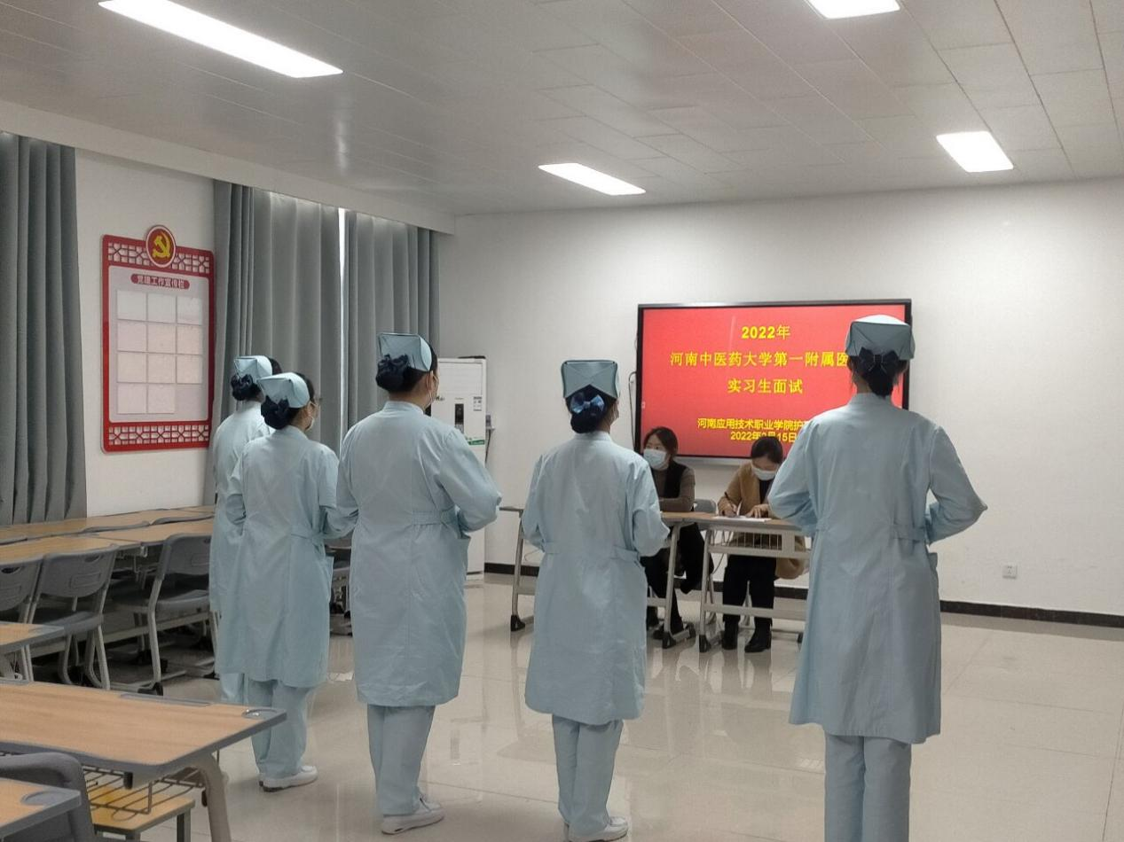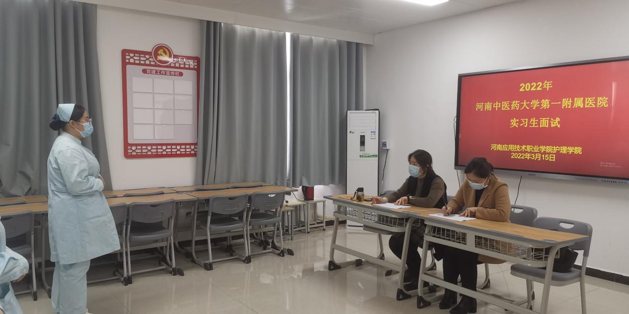 讲座结束后,在A515对贝博2020级学生进行现场面试,参与这次实习招聘面试的同学共有51人。面试开始前,同学们仪表端庄,站姿挺拔地在教室门口排列整齐,准备迎接老师们的到来。在面试过程中的同学要在一分钟之内介绍自己的情况。面对老师,护理学院学子们展现了自己的实力,凭借扎实的专业知识、娴熟的专业技能、灵活的应变能力以及沉着的现场表现力给面试老师留下深刻的印象。后期经过综合考察将选拔优秀学生进入河南中医药大学第一附属医院实习。