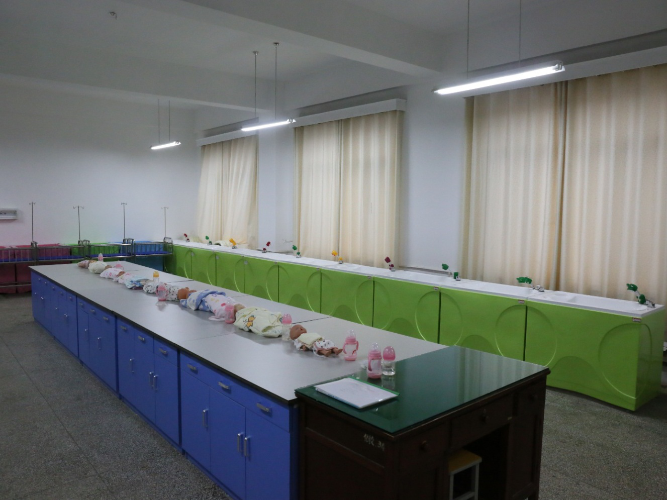 (1)实训室简介:本实训室的核心设备有新生儿红外辐射台、新生儿沐浴设施、蓝光箱、暖箱、身长测量板、儿童体重称;学生可以直观感受到新生儿出生后需要接受的一系列护理,可以进行儿科常见操作技能的训练;本实验室建成后,受益学生已经达到1200人,承担儿科技能训练达到7200人次。