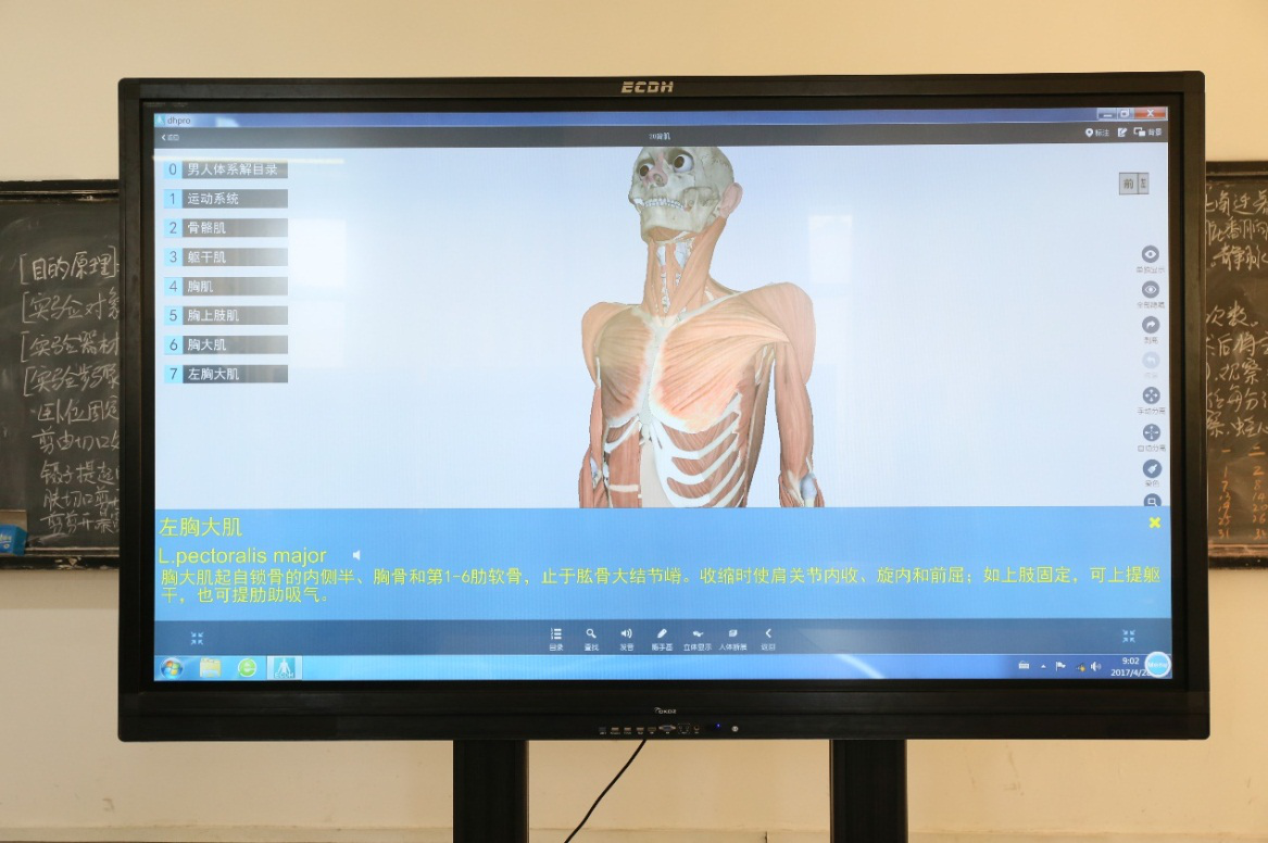 (3)特色说明:拥有ECDH数字人解剖系统;教学设施的配备都能注重学生的积极性,知识的严谨性。先进设计理念适应了现代医学解剖模式改变,有利于开拓学生的视野,提高学生的学习兴趣,培养学生的创新和思维能力。通过虚拟实验室这个平台,学生既可以在虚拟实验台上动手操作,又可自主设计实验,有利于培养操作能力、分析诊断能力、设计能力和创新意识,使学生更易获得知识。