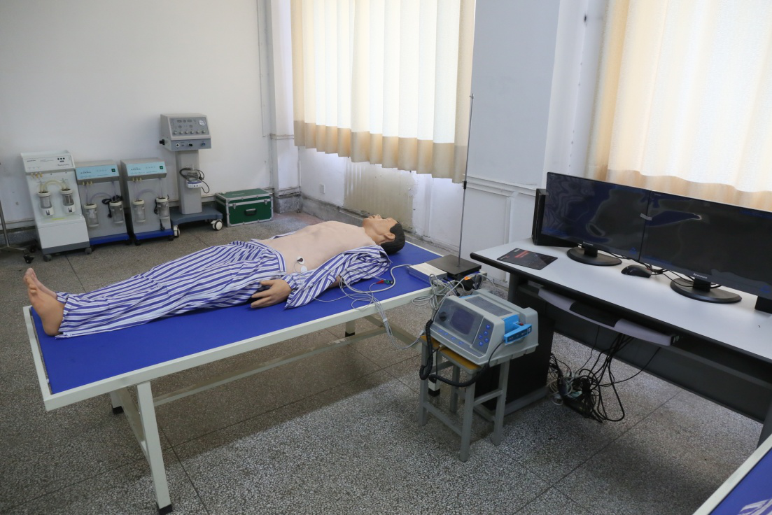 (1)实训室简介:本实训室的核心设备有多功能高仿真智能化模拟人,另配备有无创心电监护仪、电除颤机、抢救车、全自动洗胃机、呼吸机及输液泵等相关设备。本实训室可以承担急危重症患者的病情监护、心肺复苏、心脏电复律等急救护理技术实训操作练习。并具备多学科重症患者病例研究、急救护理技术研究等方面科研功能。是目前非常先进的综合实训室,学生可以进行心肺复苏技能操作的训练;无创心电监护仪的使用训练;电除颤技术训练;洗胃技术训练等。使用高仿真模拟情景教学系统,可以培养学生以病人为中心的综合操作能力、应变能力及团队协作能力,以护理小组为单位开展重症监护环境护理技术、重症监护基本技术等实训教学,对培养高素质综合性护理人才具有重要价值。本实训室建成后,受益学生已经达到800人,承担心肺复苏技能训练达到4000人次;心电监护仪使用训练800人次;电除颤技术训练800人次;洗胃技术训练800人次。