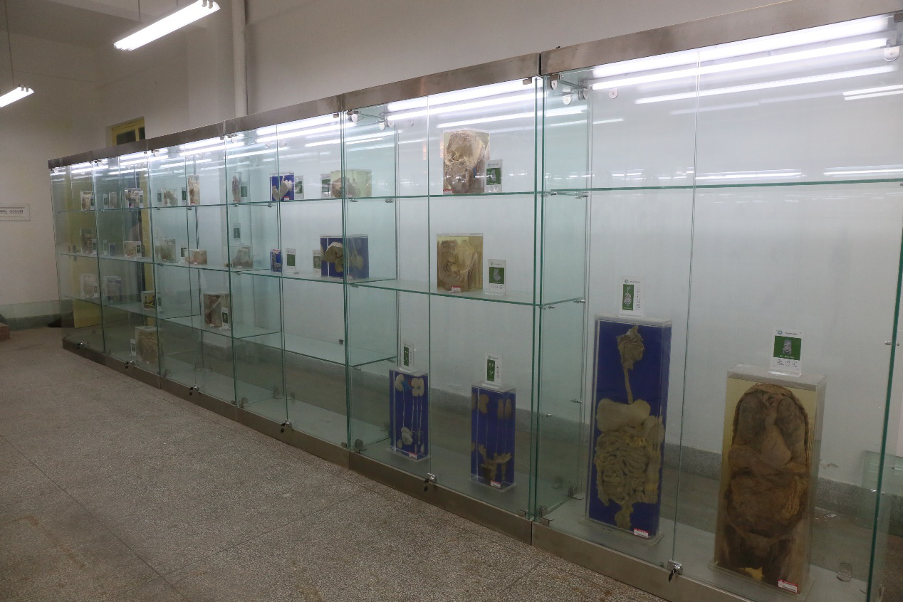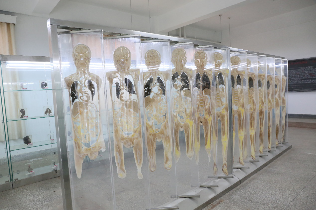 (1)实训室简介:实验室配备了多媒体互动设备:中国数字人系统。人体解剖学实验室主要承担基础医学课程中的《系统解剖学》课程,自实训室建成以来,收益学生达到1100人,每年承担解剖实训6000人次。