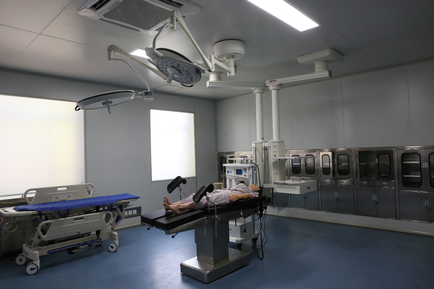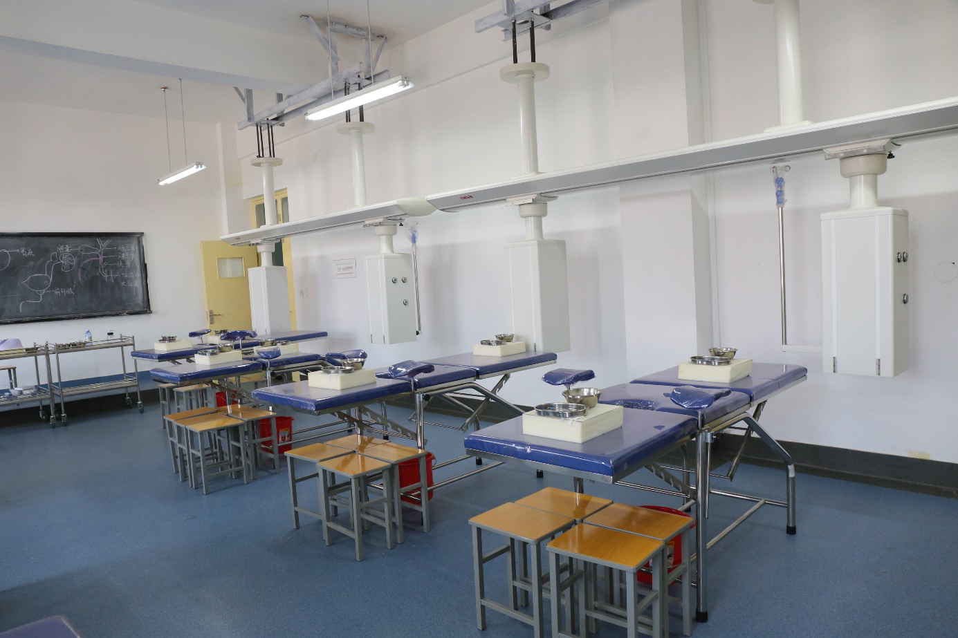 (3)特色说明:本实训室模拟医院手术室建设,学生可以直观地了解手术室的构造,让学生切实掌握手术需要的环境,能够正确进行手术前的准备。